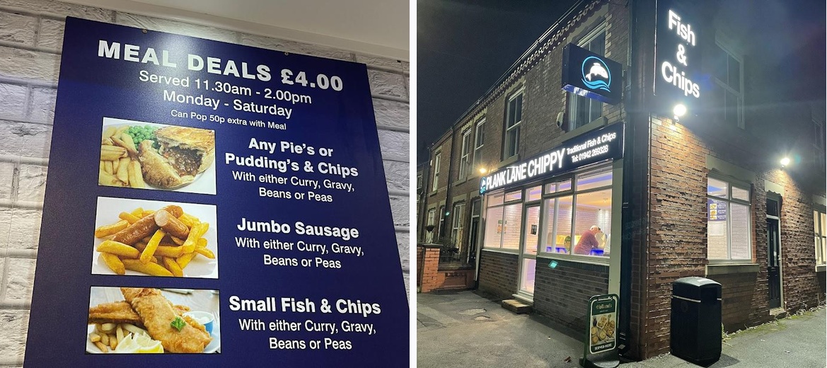 Experience the best fish and chips at Plank Lane Chippy in Leigh! Enjoy delicious, affordable meals featuring cod, curry, and flavorful gravy. Convenient parking, set meals, and delightful puddings await you. Call us at +44 1942 269328 for a taste of happiness!